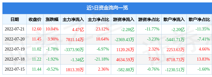 近5日资金流向一览见下表: