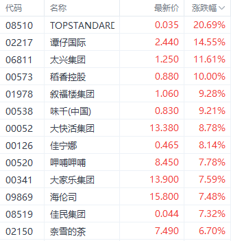 受以上消息影响,香港餐饮股走高,谭仔国际(02217.HK)、味千(00538.HK)、海伦司(09869.HK)分别上涨14.55%、9.21%、7.48%。