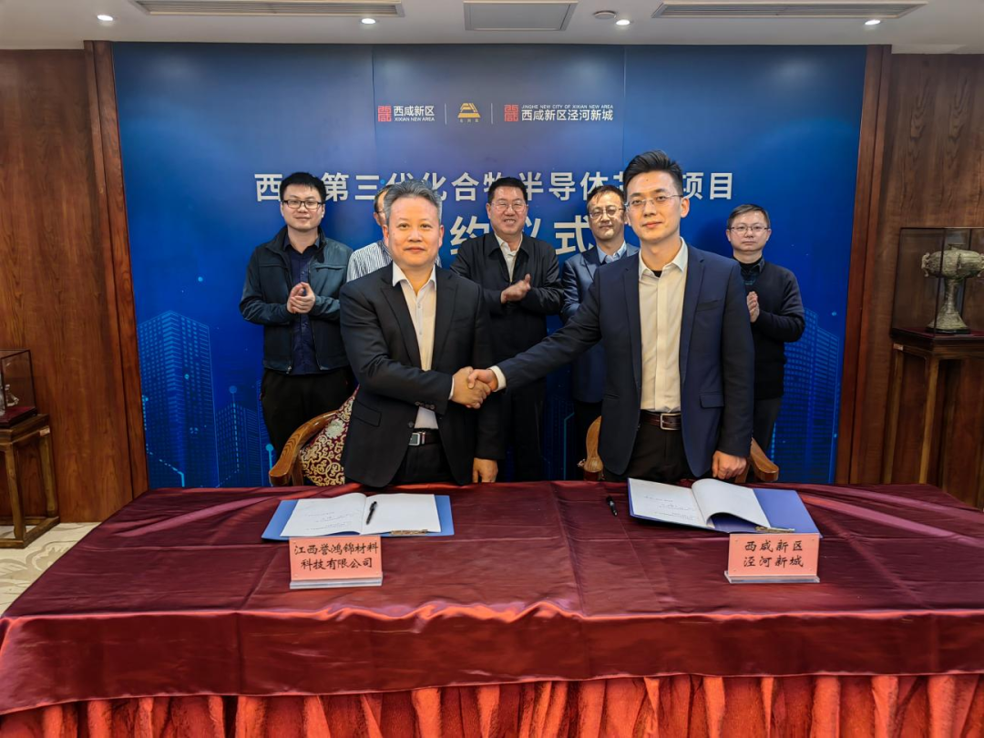12月8日,西咸新区泾河新城与江西誉鸿锦材料科技有限公司在北京签订战略合作框架协议:总投资116亿元的西安第三代化合物半导体芯片与器件产业化项目正式落户泾河新城。