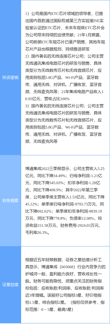 博通集成涨停收盘,收盘价31.52元。该股于9点40分涨停,3次打开涨停,截止收盘封单资金为4511.91万元,占其流通市值0.95%。