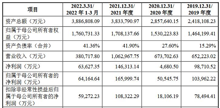 2019年至2022年1-3月,华虹半导体实现营业收入分别为652,223.02万元、673,702.63万元、1,062,967.75万元、380,717.80万元,净利润分别为98,710.52万元、4,680.50万元、146,313.14万元、63,627.35万元,归属于母公司所有者的净利润分别为103,962.22万元、50,545.75万元、165,999.74万元、64,164.64万元,扣除非经常性损益后归属于母公司所有者的净利润分别为78,494.41万元、18,106.19万元、108,322.29万元、59,272.23万元。