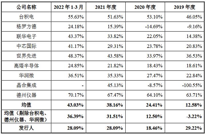 上述同期,公司综合毛利率分别为29.22%、18.46%、28.09%和28.09%,主营业务毛利率分别为28.52%、17.60%、27.59%和27.71%,同行业上市公司综合毛利率均值分别为12.58%、24.41%、38.16%、43.03%。2020年、2021年及2022年1-3月,公司毛利率水平低于同行业可比公司均值。