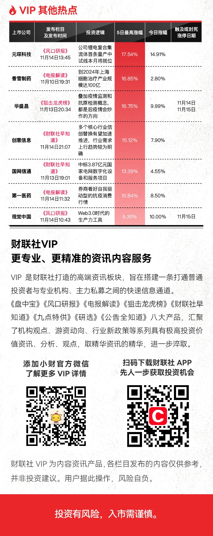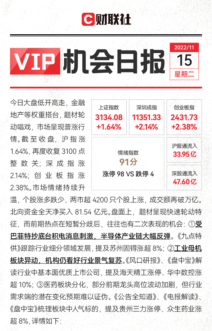 注:财联社VIP为内容资讯产品,并非投资建议。以下内容仅为资讯价值展示非对相关公司的推荐建议,非未来走势预测。投资有风险,入市需谨慎。